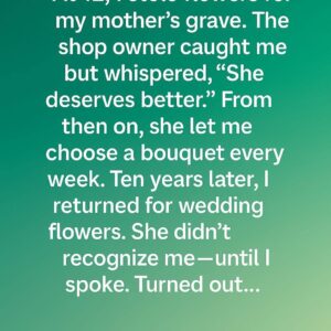 The Flower Shop Owner Who Chose Compassion Over Punishment, Quietly Transforming a Grieving Twelve-Year-Old’s Life Through Weekly Kindness, Dignity, and a Simple Act of Humanity That Echoed From a Cemetery Visit to a Wedding Day Years Later